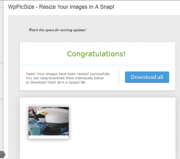 3. Preview Resized Images(no preview for thumbnails, they are 100px X 100px) and Download Either Individually, or All Images At Once In A Handy .ZIP File: